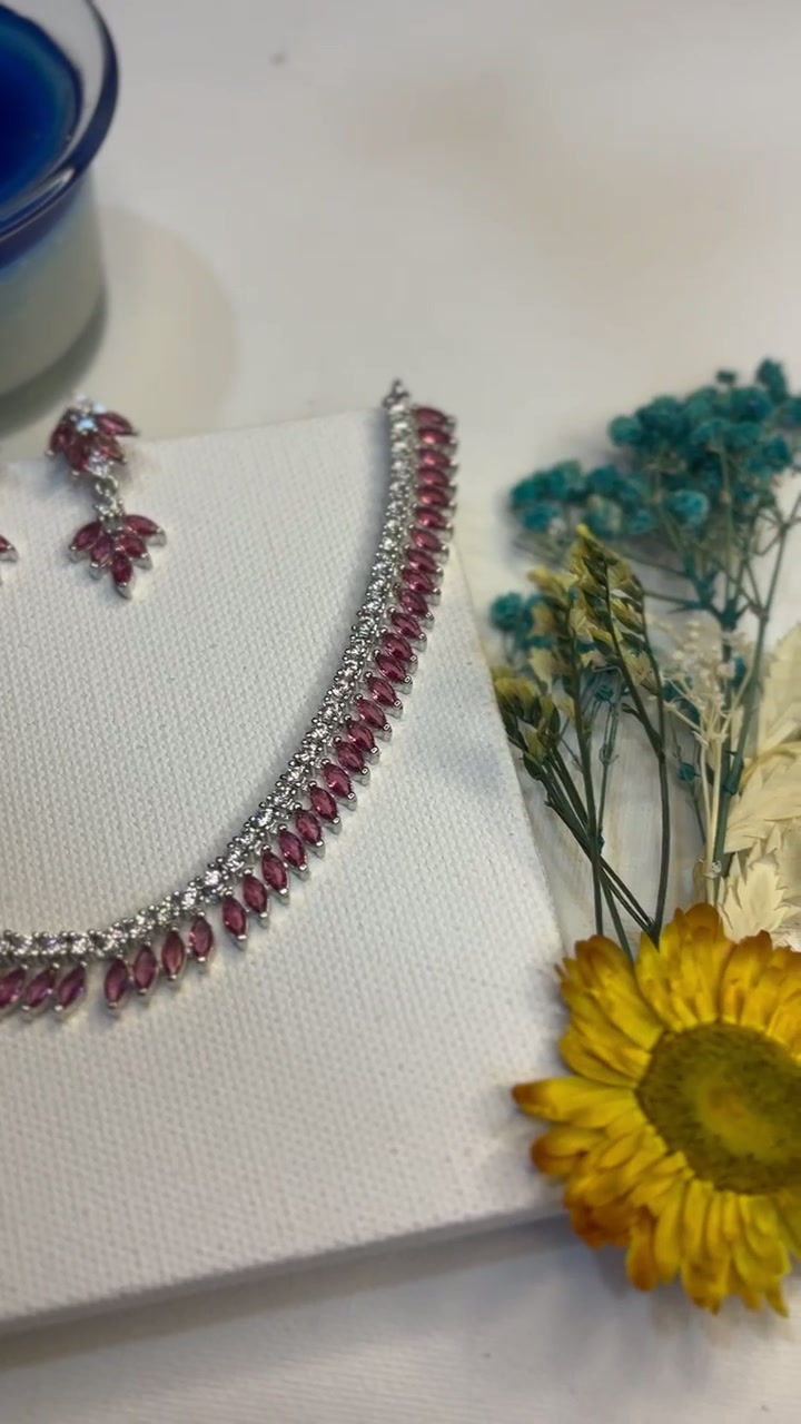 Silver Green Aura Neckpiece with matching Earrings